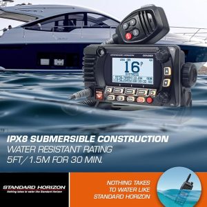 IPX8 waterproof and backed by Standard Horizon’s 3-year waterproof warranty